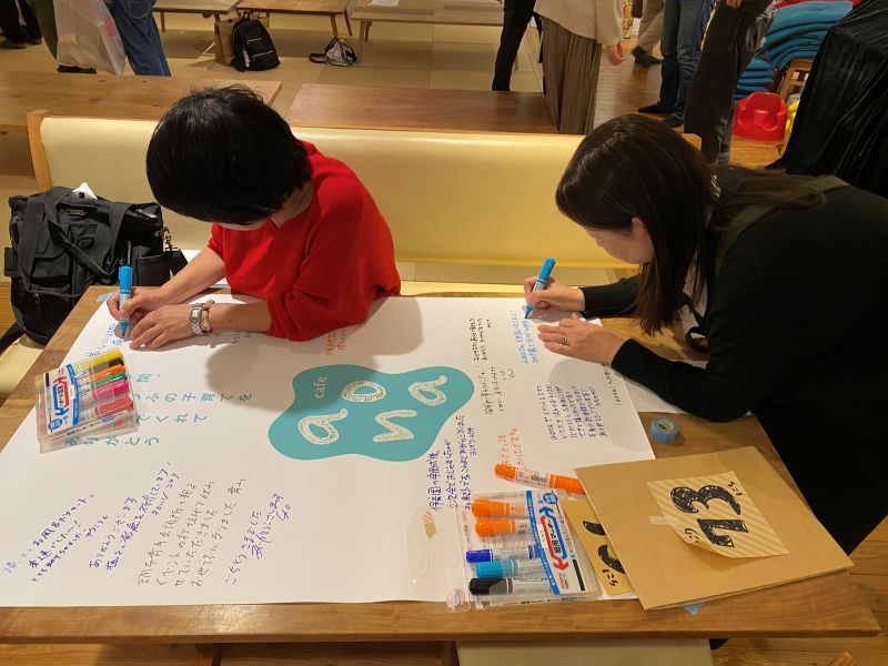 2025年の年明け第1弾は、3月末で閉店が決まっていた調布の子育てカフェ「aona」で開催しました。長年調布の子育てを見守ってきた場所のため、お世話になった方も多く、感謝を込めて寄せ書きポスターを作成し、贈りました。