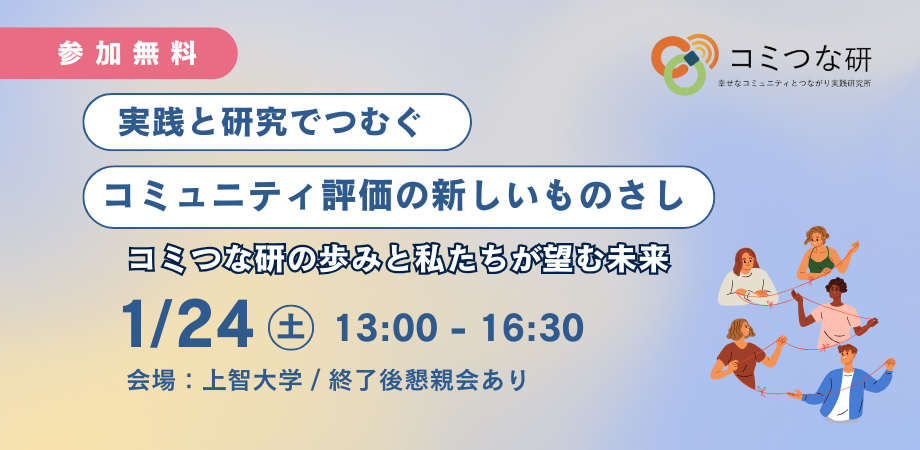 1月24日(土) 、上智大学で開催される「コミつな研フォーラム」(主催:一般社団法人幸せなコミュニティとつながり実践研究所)【第1部】に、弊社共同代表の大槻昌美が登壇します。