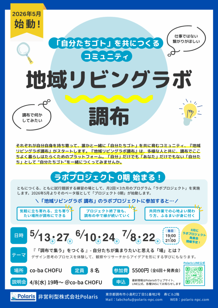 誰かと一緒に「自分たちゴト」を共に育むコミュニティ、『地域リビングラボ調布』がスタートします。
